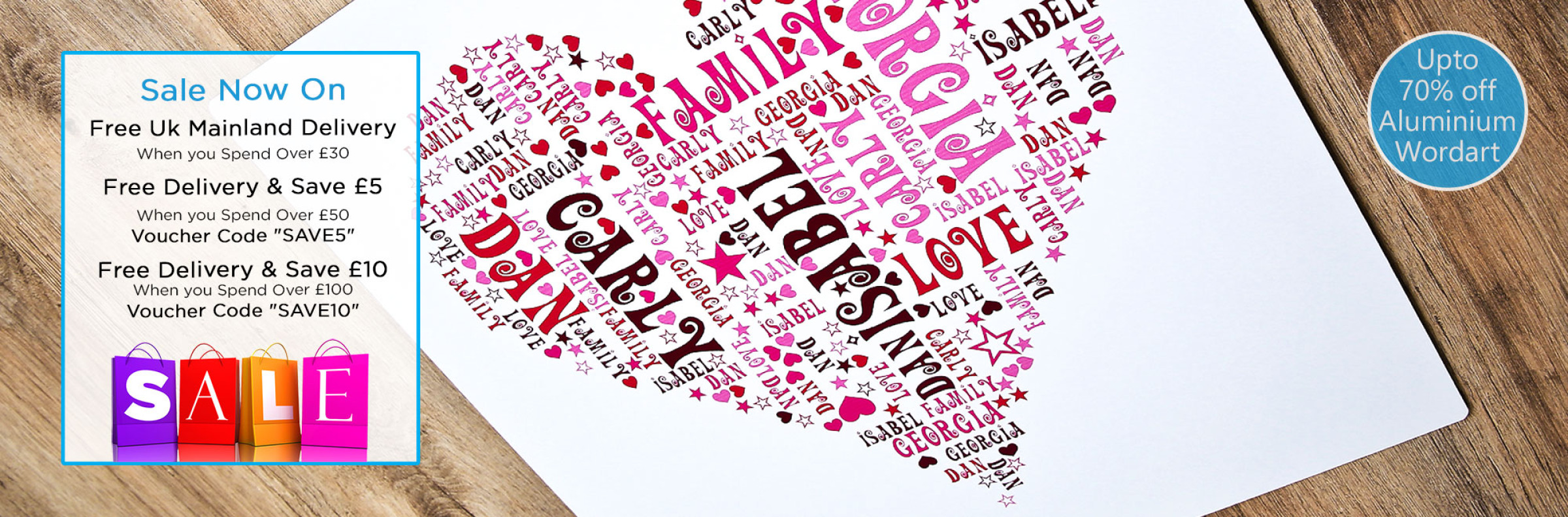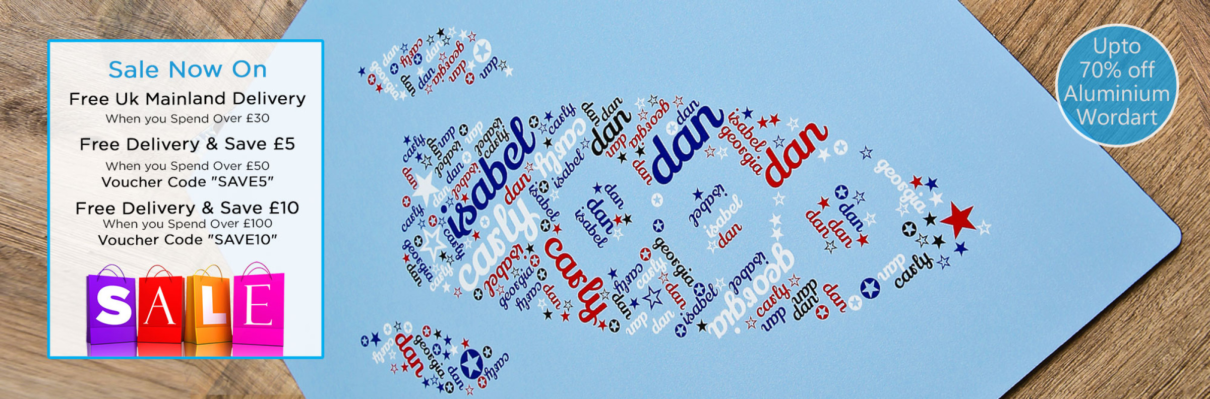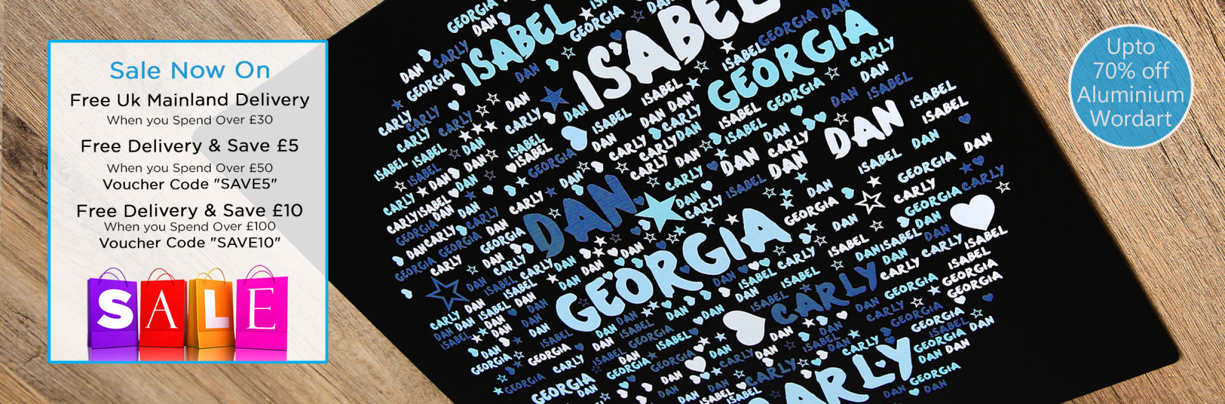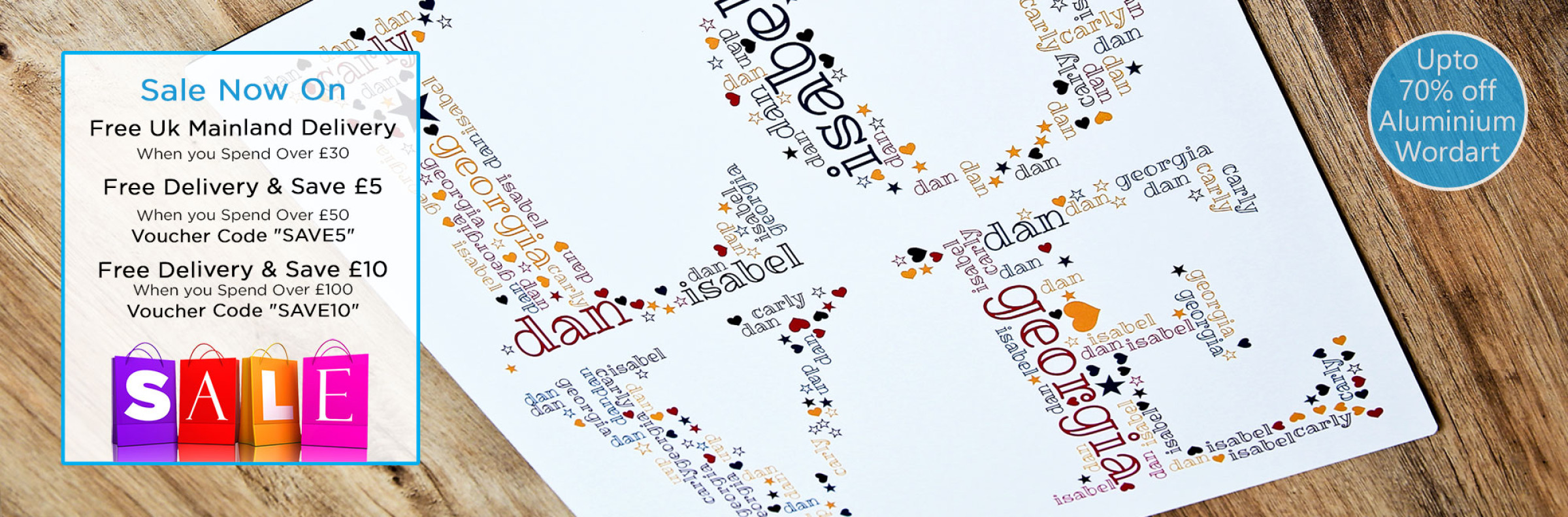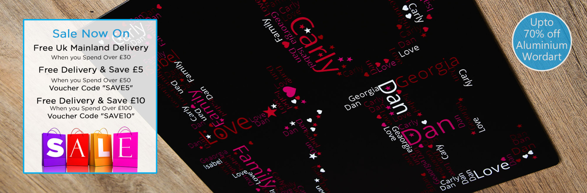 beautiful word art aluminium using your words, choose a font, colours and make something unique.
